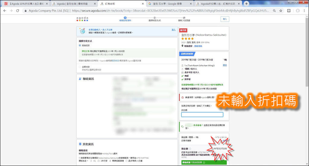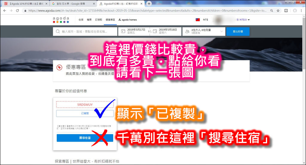 直接點選「搜尋住宿」價錢NT$5573,還未稅哦!