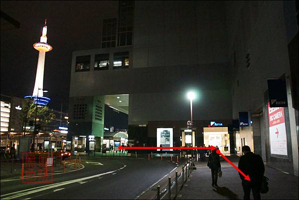 走出京都駅往左轉,沿著路一直走(紅色箭頭一直走)