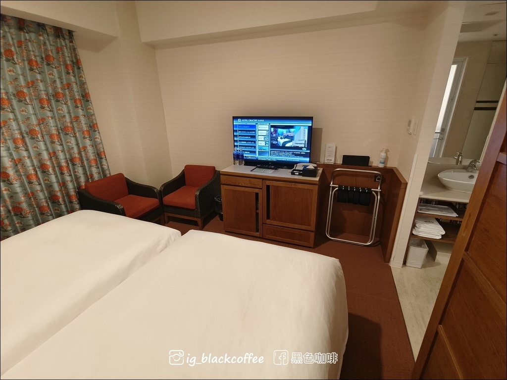 兩張單人床的室內空間,對單人入住的我來說非常寬敞
