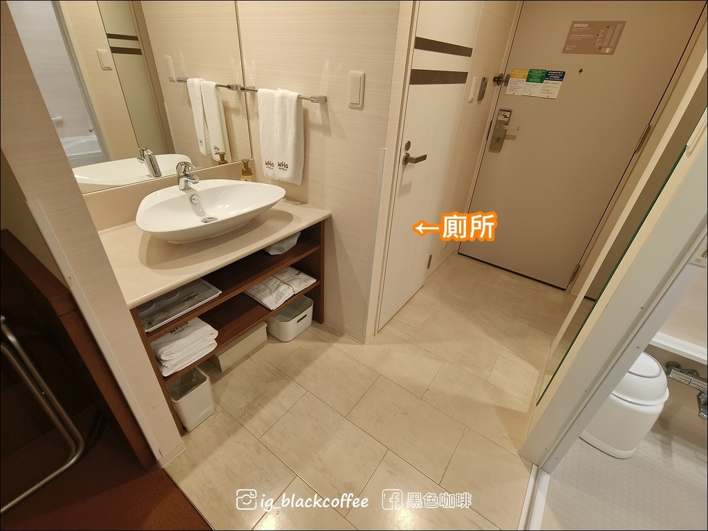 衛浴設備屬於乾濕分離是標準的日式衛浴空間設計,空間很寬敞,非常適合情侶、夫妻,或是家人、朋友,只要有人上廁所,整間浴室也等於被佔用了
