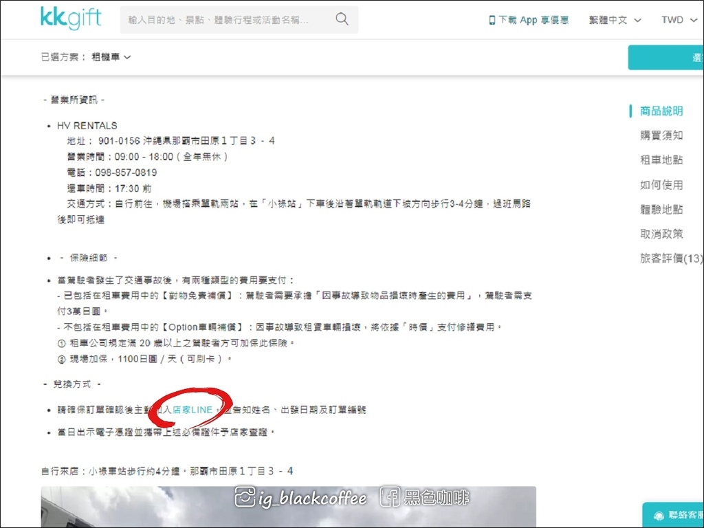 | 車輛補償 | 2200円/天 (現場加保) | 1,500円/天 (訂單加保) | |