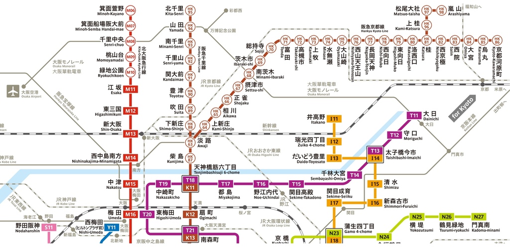 ⚠ 御堂筋線僅適用至江坂站,超過江坂站進入「北大阪急行」需另付費。